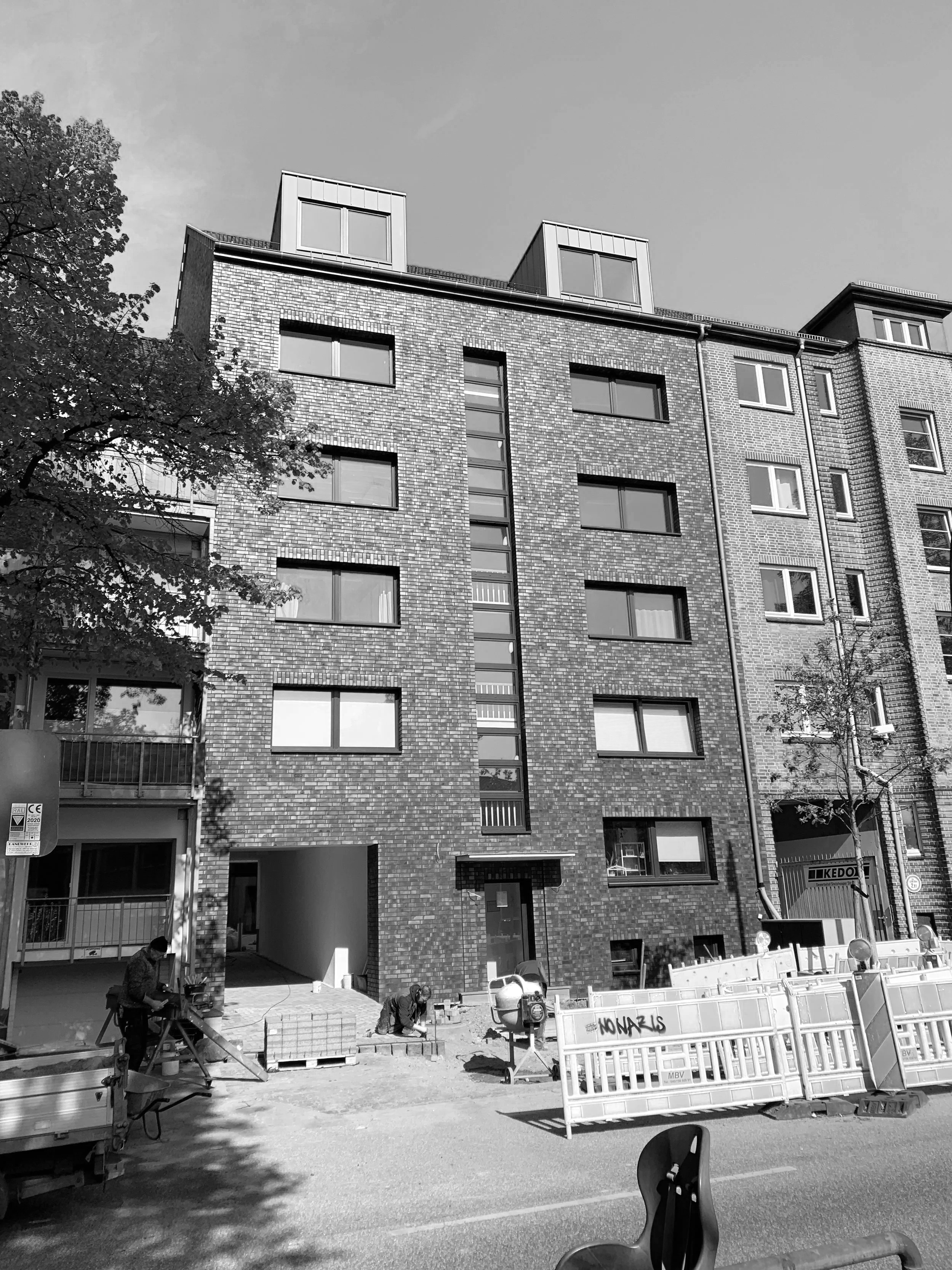 In Ottensen wurde ein bestehendes Einfamilienhaus entfernt und durch ein Mehrfamilienhaus mit acht Wohneinheiten ersetzt. Das Projekt umfasste die üblichen Architektenleistungen von der Ausführungsplanung bis zur Fertigstellung.